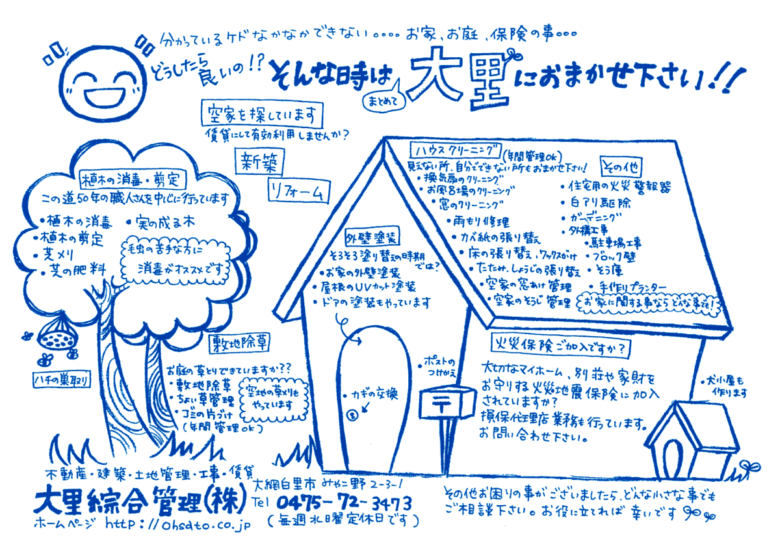 お家、お庭、保険の事・・・お困り事が有りましたら大里におまかせ下さい!